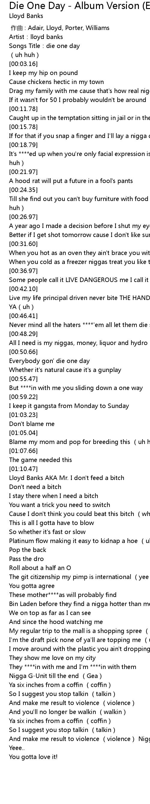 | [01:13.72] | Lloyd Banks AKA Mr. I don't feed a bitch |