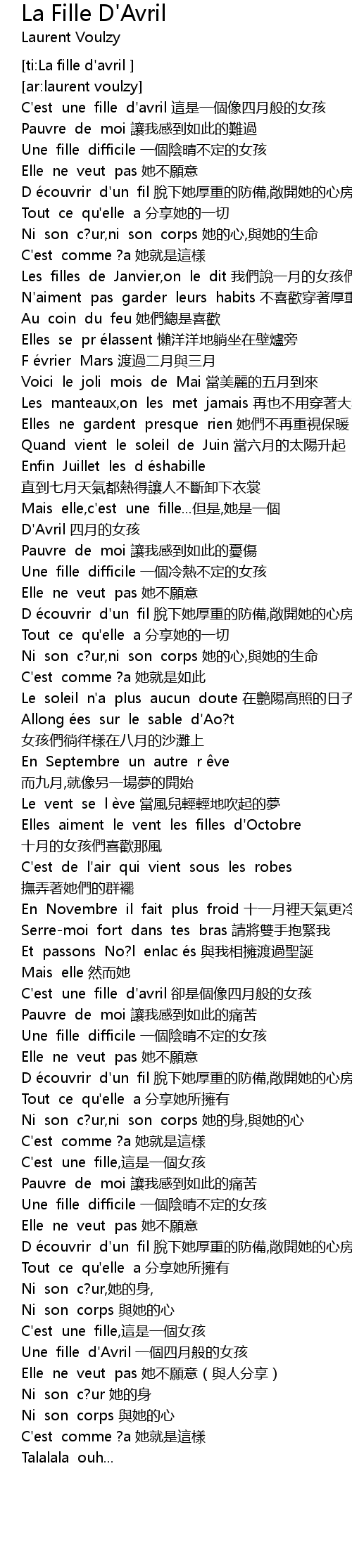 | [ti:La fille d'avril ] | |