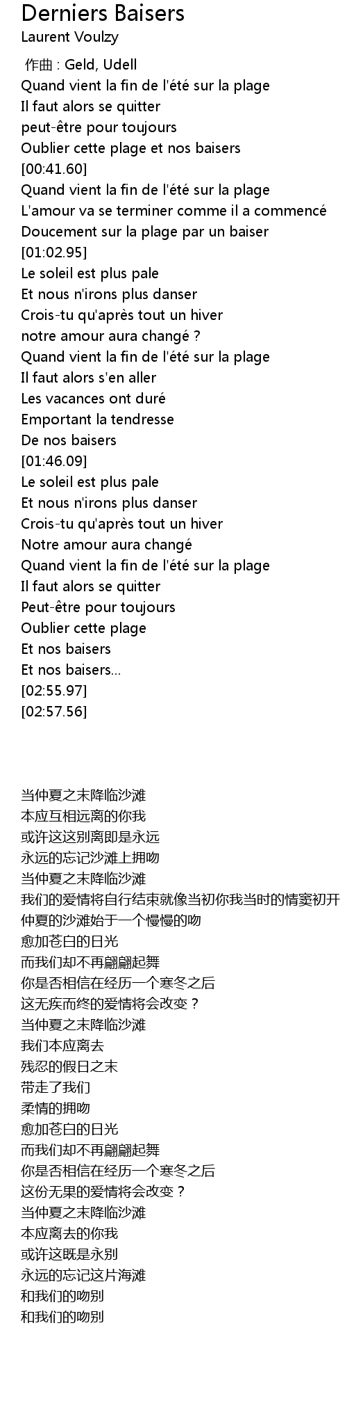 | [00:43.01] | Quand vient la fin de l'é té sur la plage |