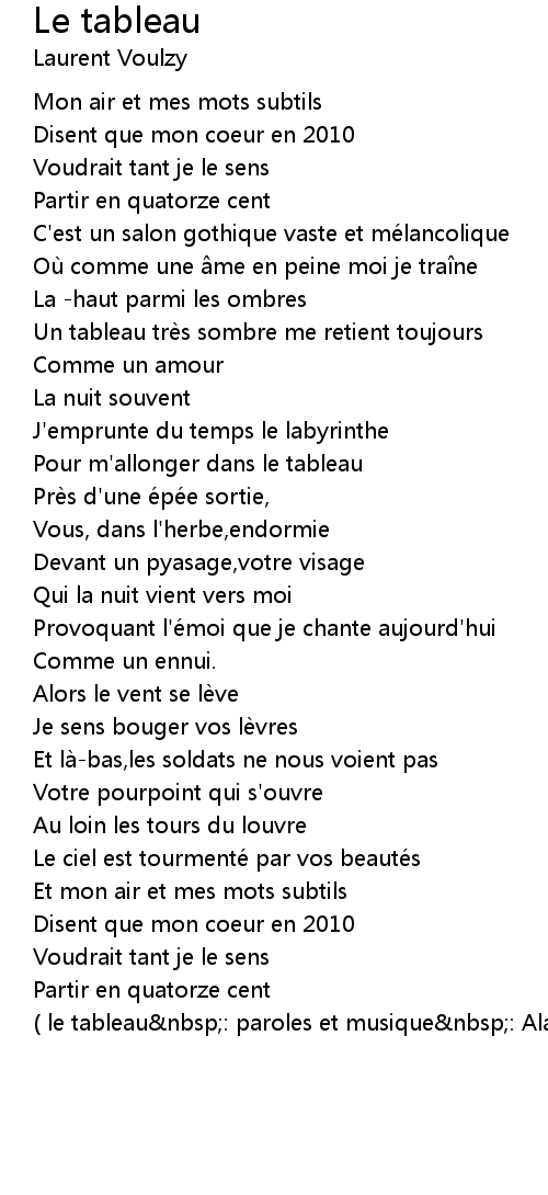| le tableau nbsp: paroles et musique nbsp: Alain souchon et laurent Voulzy |