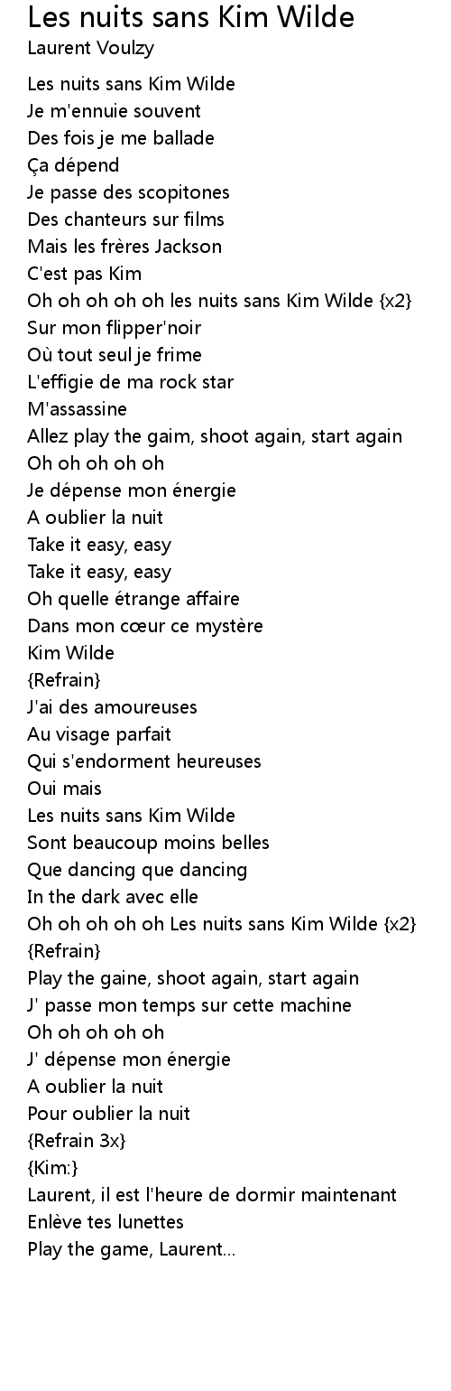 | Oh oh oh oh oh Les nuits sans Kim Wilde {x2} | |
