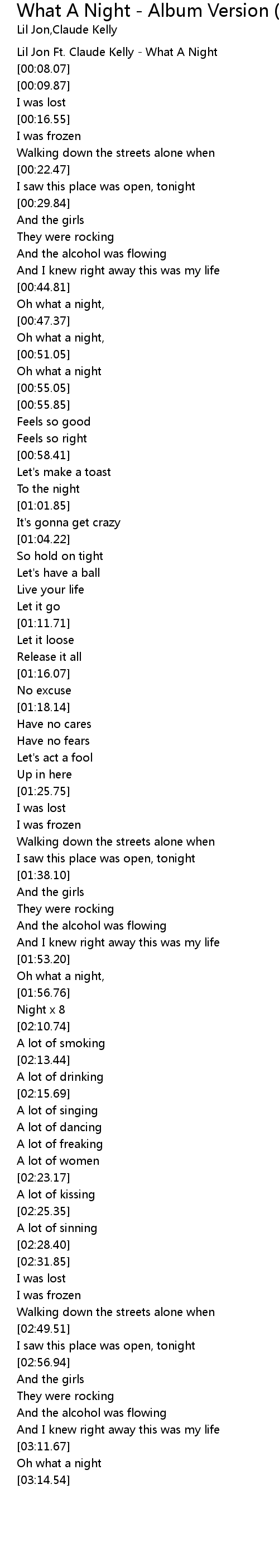 Lil Jon Ft. Claude Kelly - What A Night |