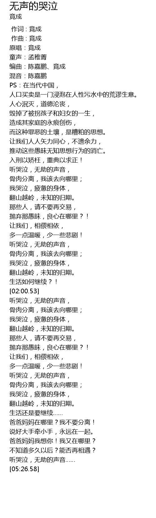 | [05:13.00] | 听哭泣,无助的声音…… |