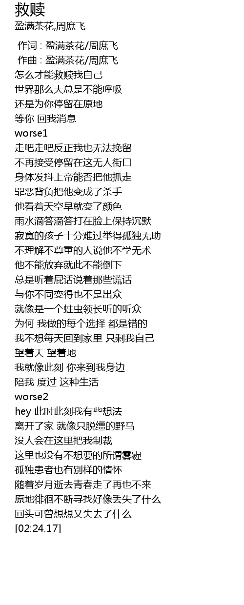 | [00:15.06] | 怎么才能救赎我自己 |