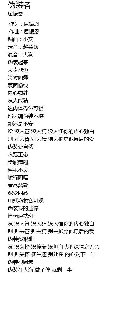 | [03:08.981] | 伪装在人海 做了伴 就剩一半 |