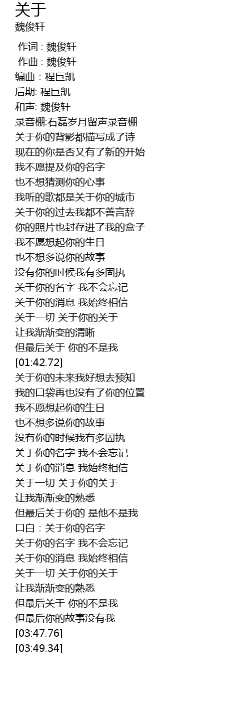 | [00:00.000] | 作词 : 魏俊轩 |