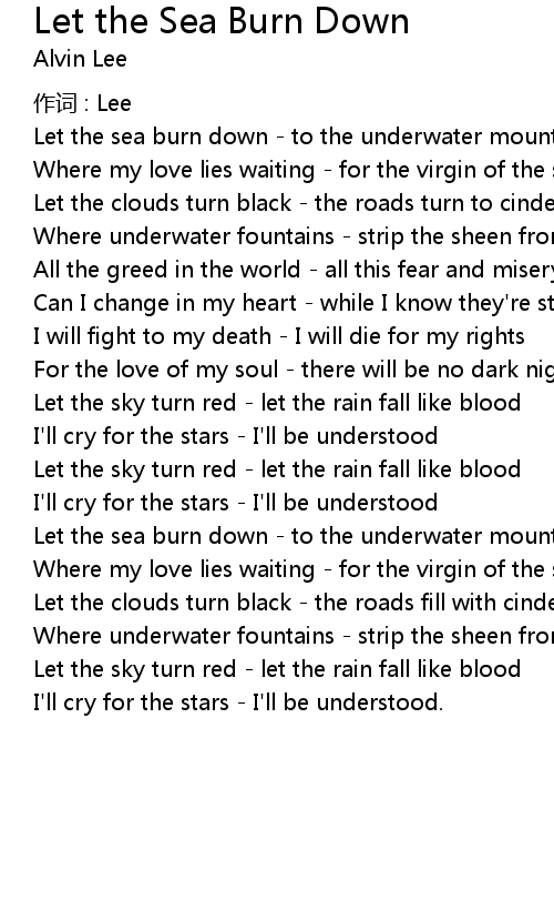 | Let the sea burn down to the underwater mountains | |