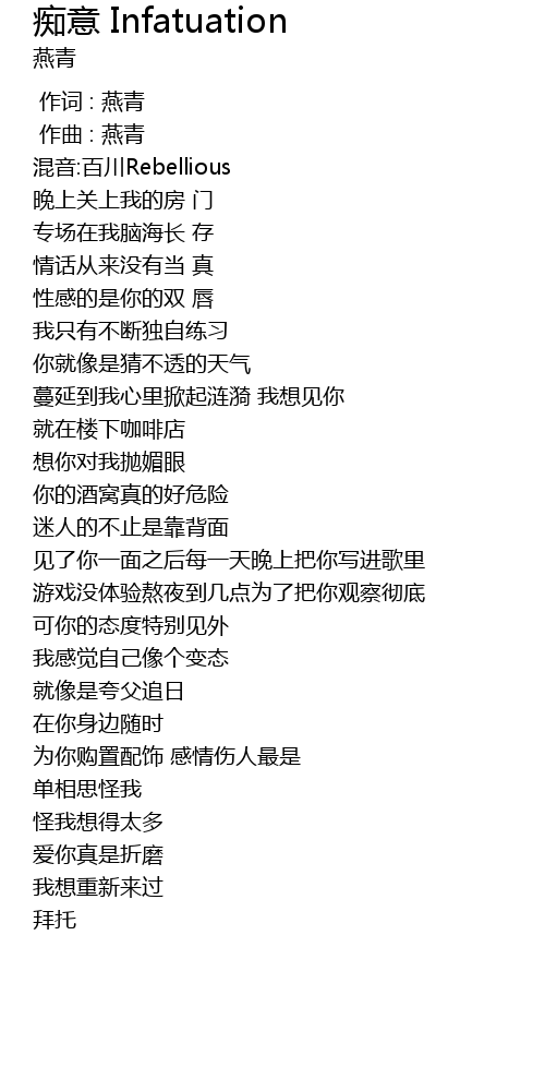 | [00:01.000] | zuò qǔ : yàn qīng |