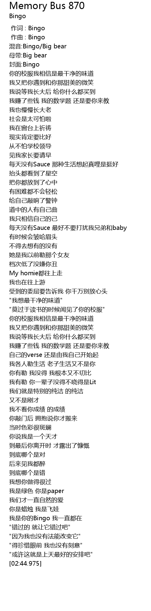 | [02:23.488] | 我是你的Bingo 我一直都在 |