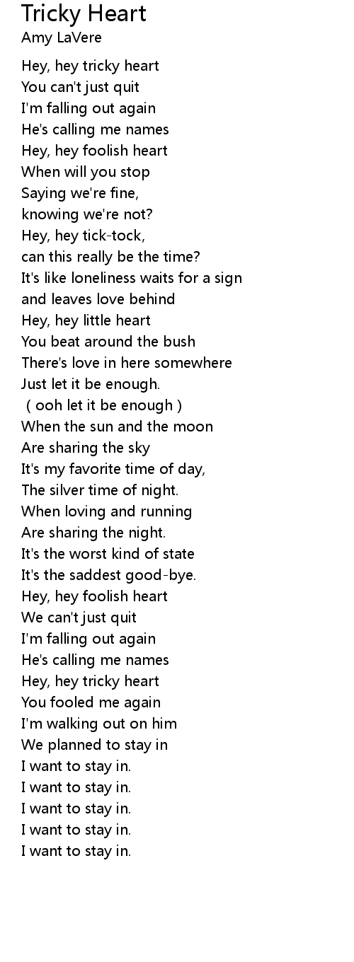 | [03:08.65] | Hey, hey tricky heart |