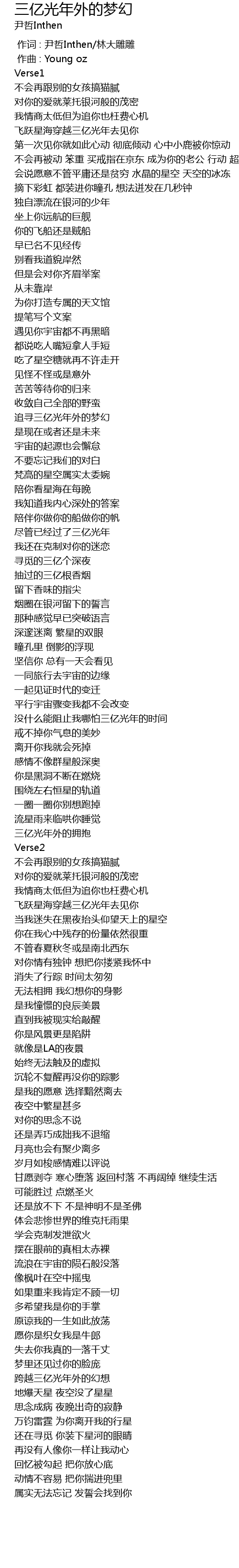 | [03:22.953] | kuà yuè sān yì guāng nián wài de huàn xiǎng |