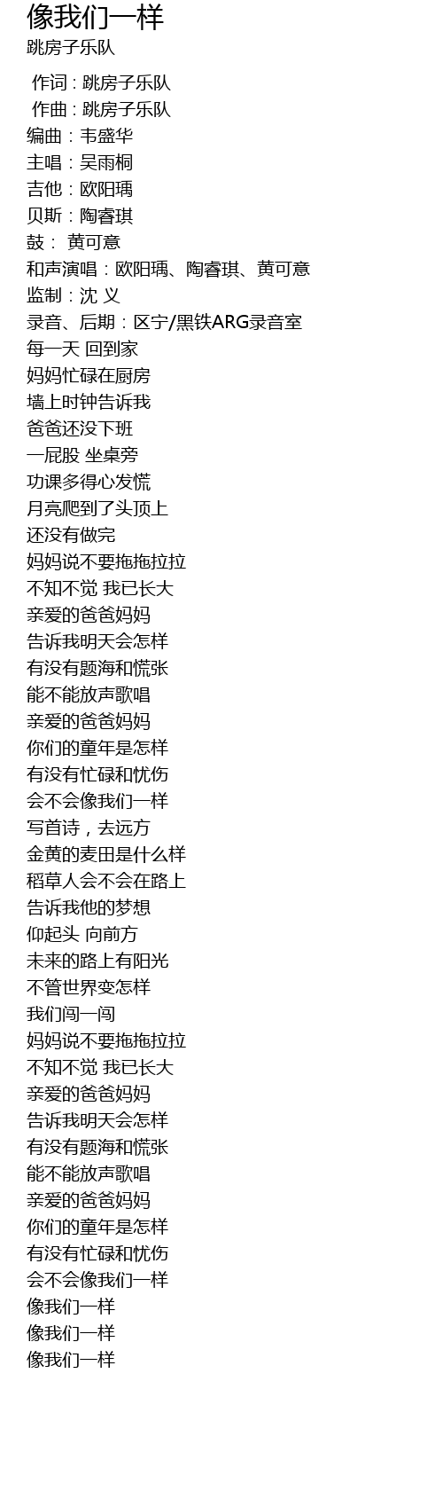 | [00:00.000] | 作词 : 跳房子乐队 |
