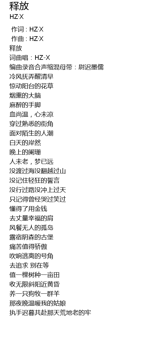 | [00:00.000] | 作词 : HZ·X |