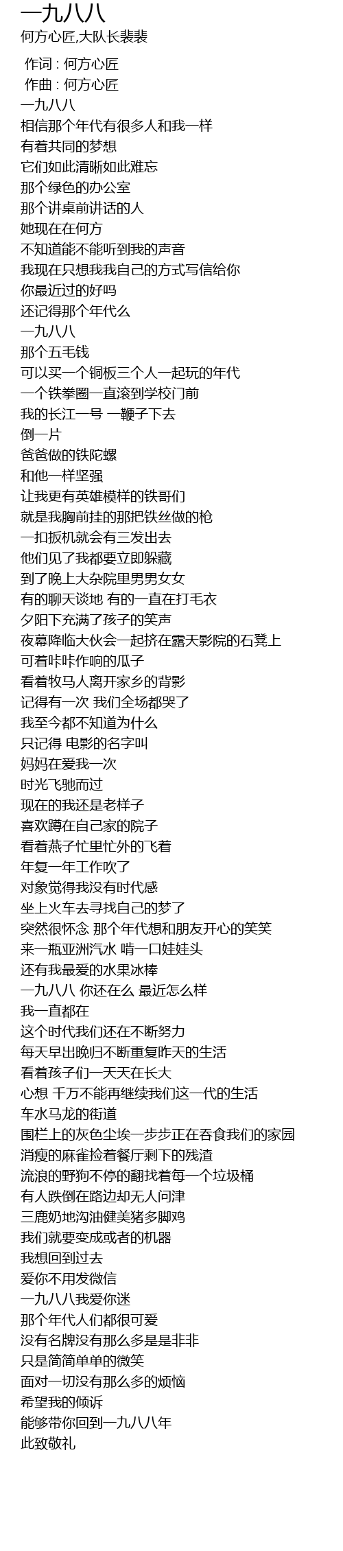 | [02:27.458] | yī jiǔ bā bā nǐ hái zài me zuì jìn zěn me yàng |