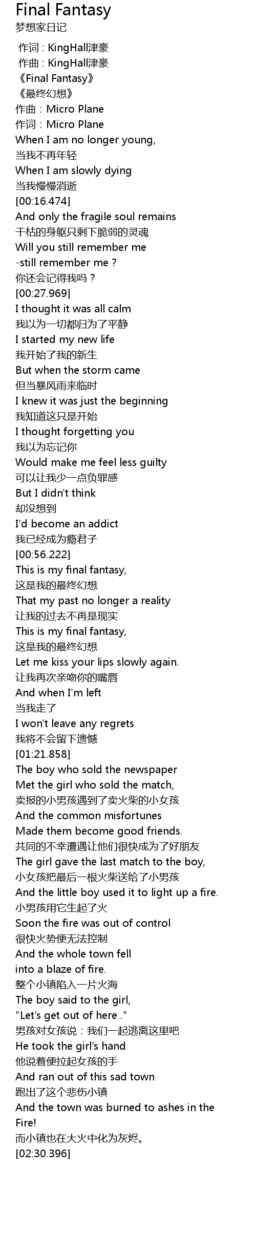 | [01:48.052] | mài bào de xiǎo nán hái yù dào le mài huǒ chái de xiǎo nǚ hái |