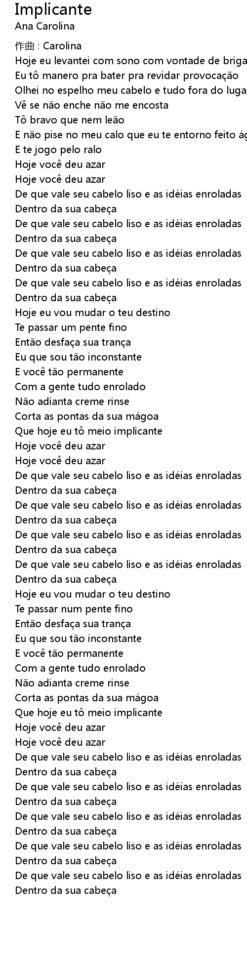 | Que hoje eu t meio implicante | |
