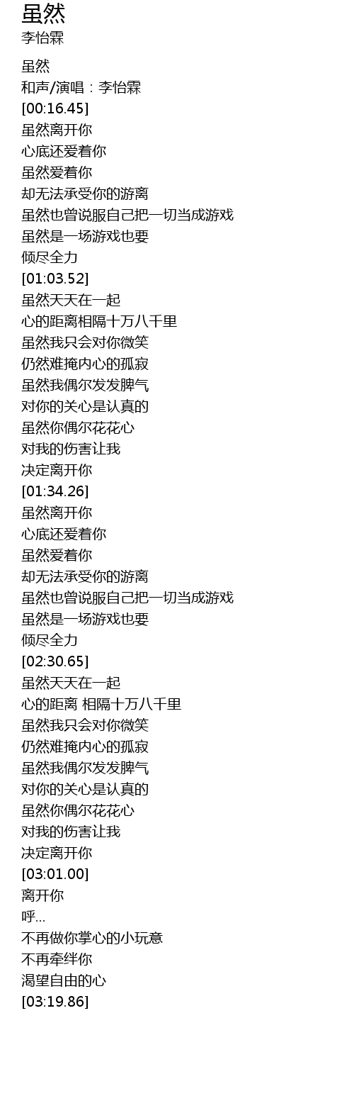| [01:16.42] | sui ran wo ou er fa fa pi qi |