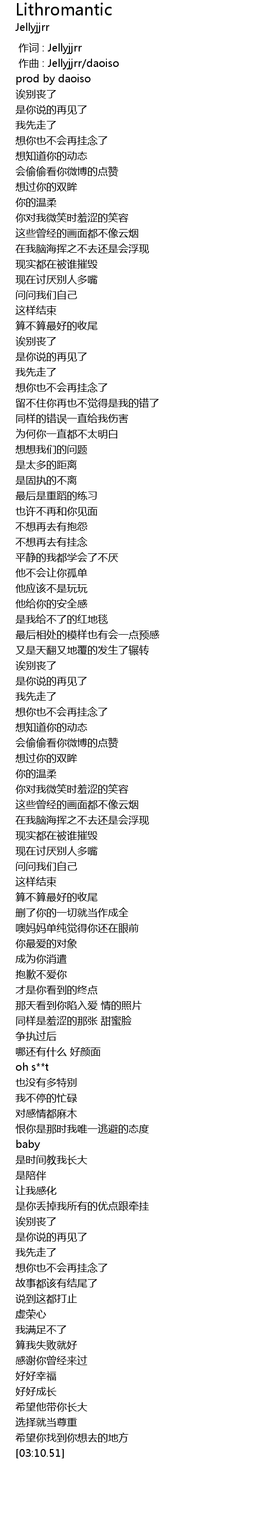 | [00:01.000] | 作曲 : Jellyjjrr/daoiso |