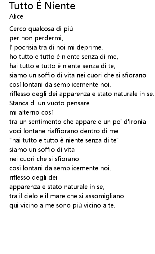 | " hai tutto e tutto e niente senza di te" | |