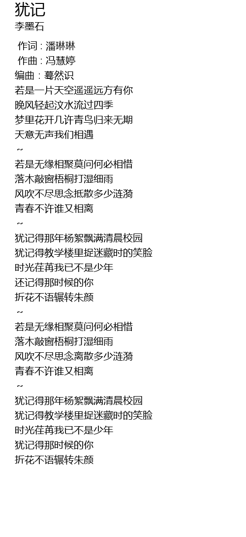 | [02:35.39] | 犹记得那年杨絮飘满清晨校园 |