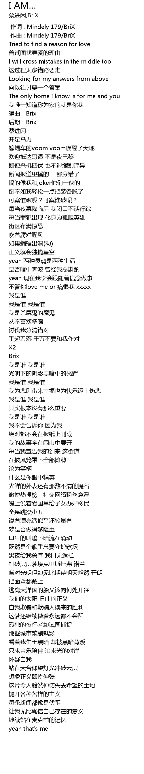 | [00:00.000] | 作词 : Mindely 179/BriX |