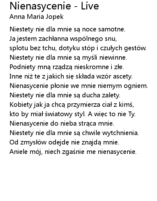 | Aniele mó j, niech zga nie me nienasycenie. |