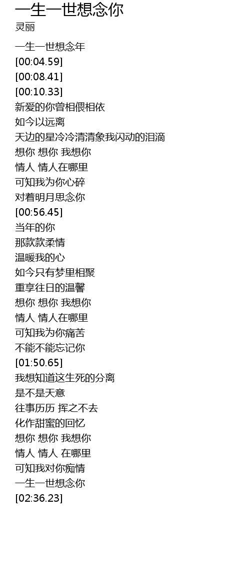 | [00:01.18] | yī shēng yī shì xiǎng niàn nián |