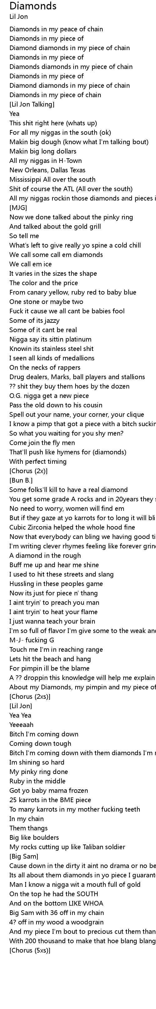 Diamonds diamonds in my piece of chain |