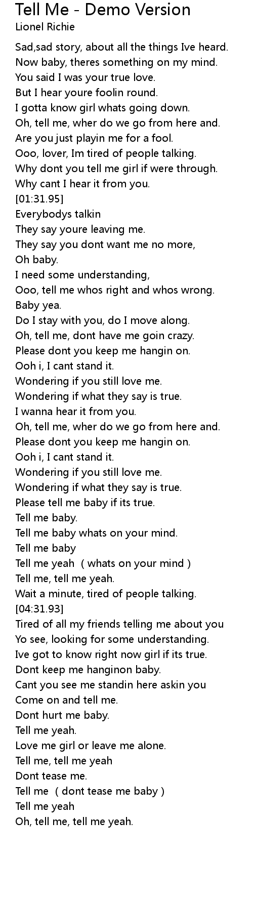 | [04:41.98] | Ive got to know right now girl if its true. |