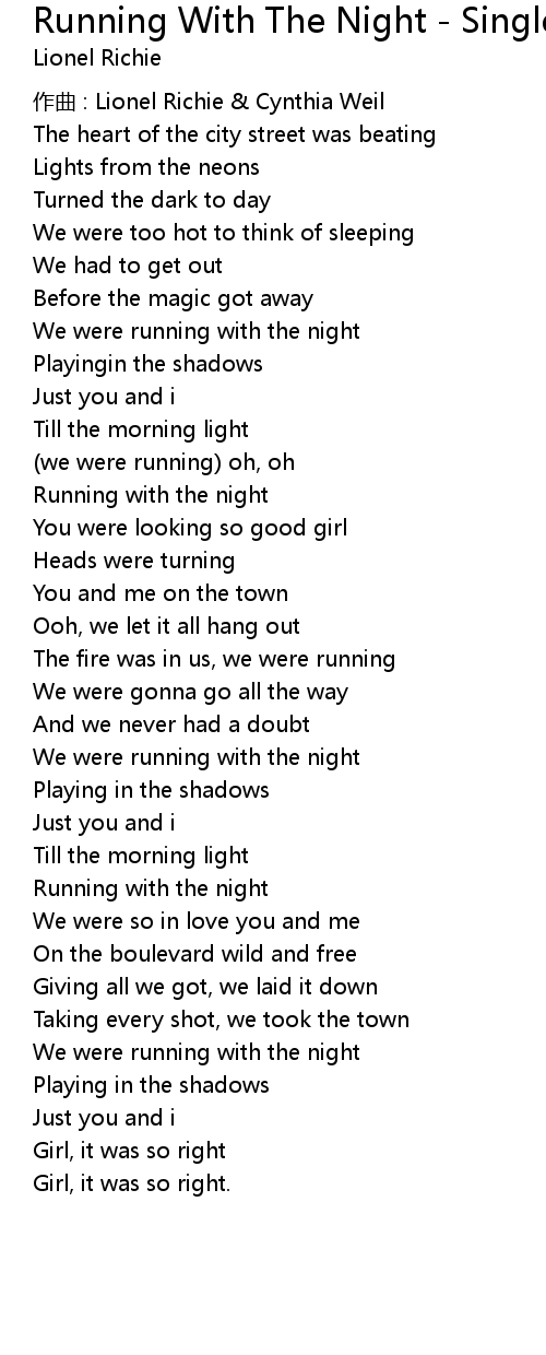 | Song | Running With The Night - Single Version |