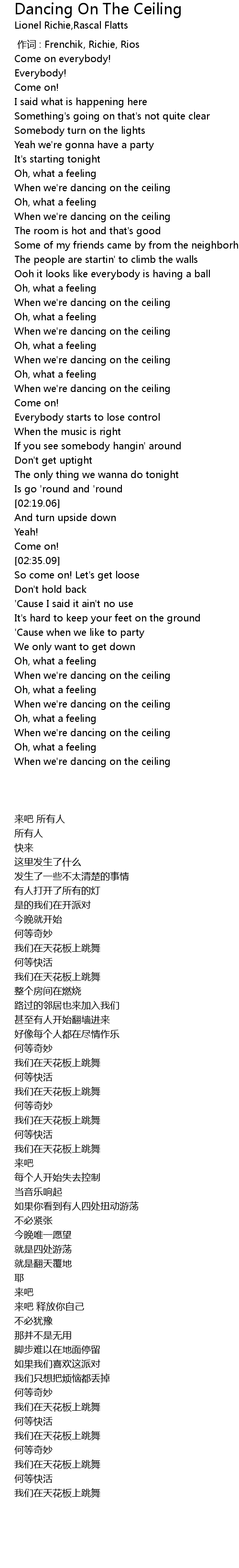 | [02:59.27] | When we're dancing on the ceiling |