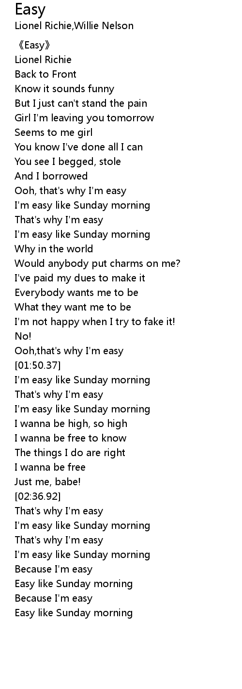 | [00:51.71] | I' m easy like Sunday morning |