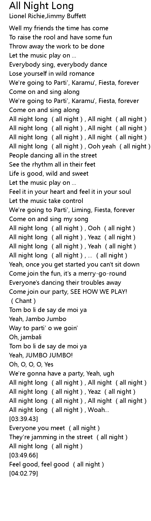 | [03:30.57] | All night long (all night), All night (all night) |