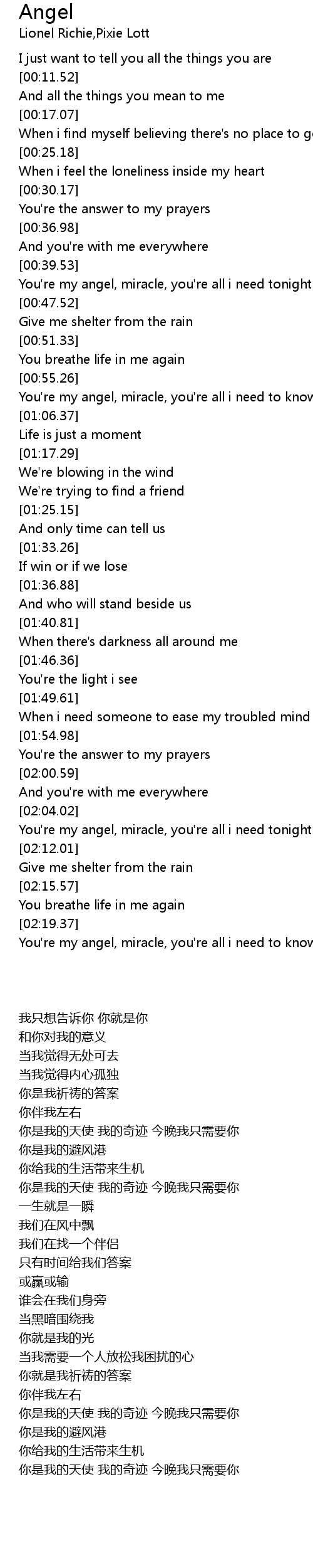 [02:05.71] You're my angel, miracle, you're all i need tonight