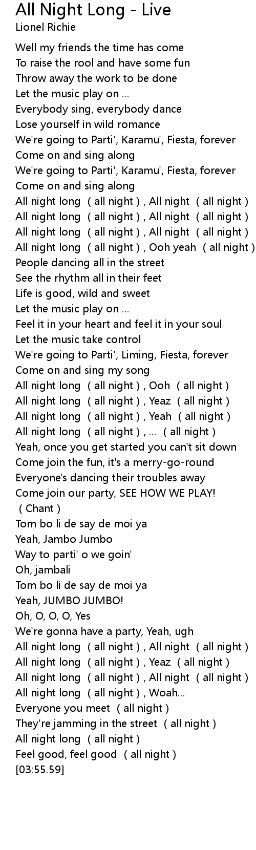 | [01:16.78] | All night long all night, Ooh yeah all night |
