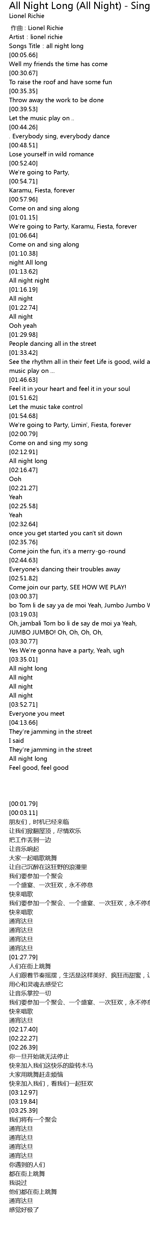 | [00:03.11] | Songs Title: all night long |