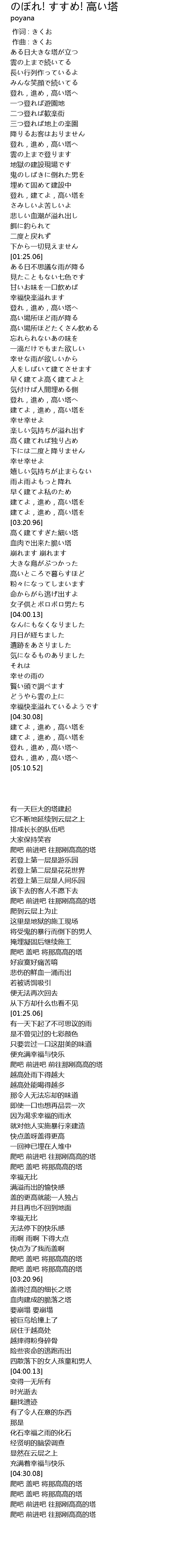 | [03:06.37] | jiàn, jìn, gāo tǎ |