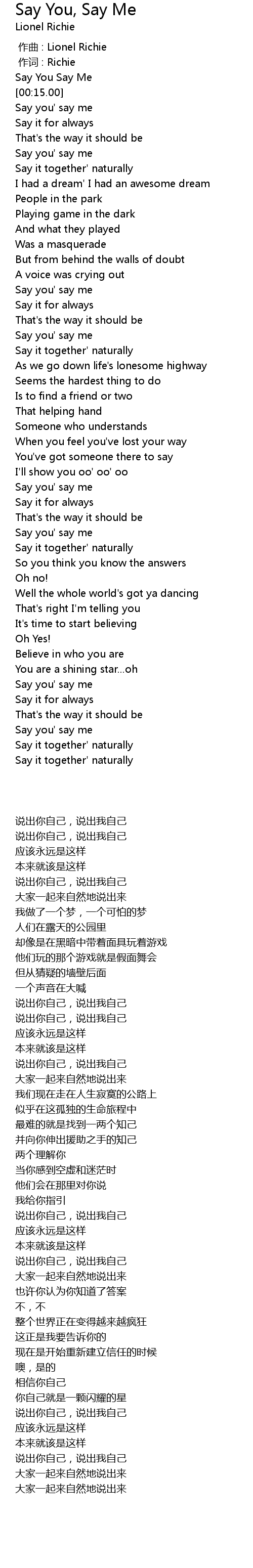 | [00:16.51] | Say you' say me |