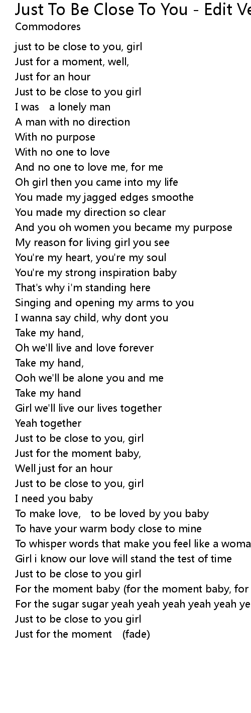 | Song | Just To Be Close To You - Edit Version (With Vocal Intro) |