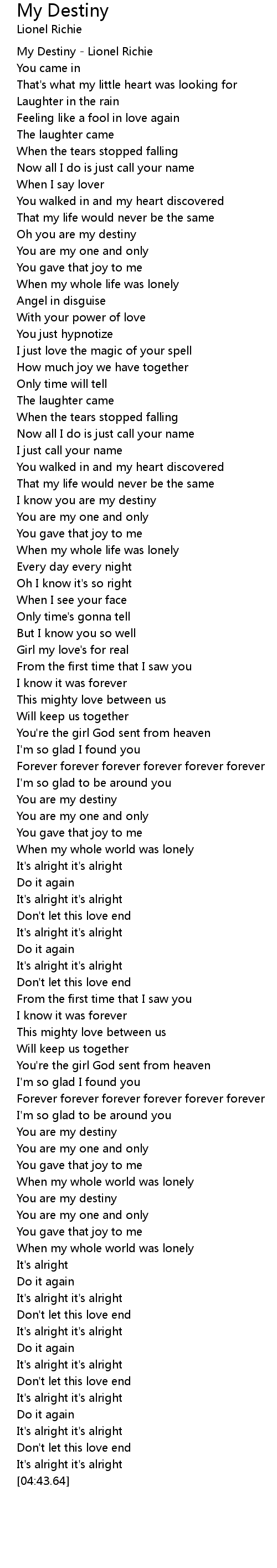 My Destiny - Lionel Richie |