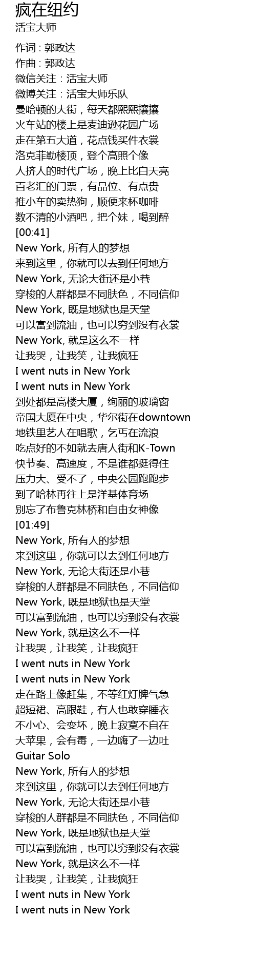 | [01:58] | New York, suǒ yǒu rén de mèng xiǎng |