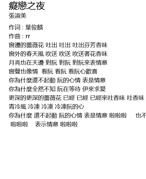 | 你為什麼 還不起動 阮的心情 表是情意 啦啦啦 也不緊來 啦啦啦 表示情意 啦啦啦 |