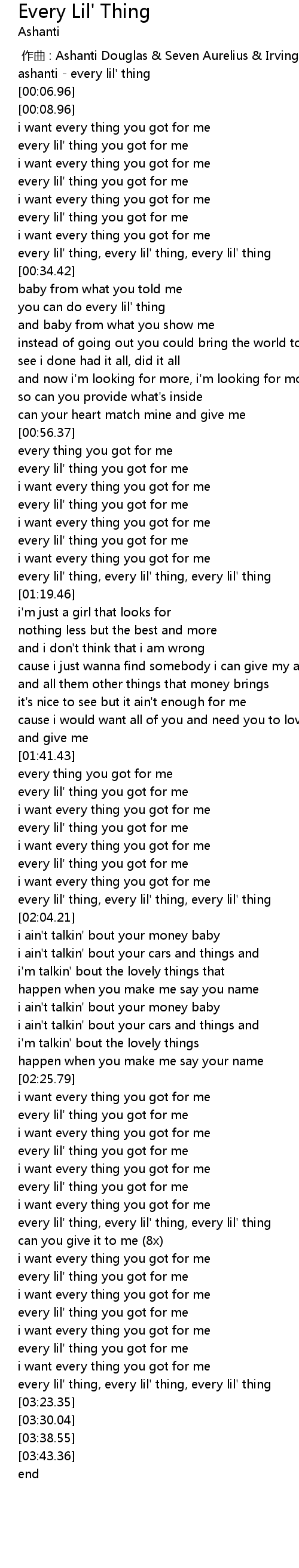| [03:19.51] | every lil' thing, every lil' thing, every lil' thing |