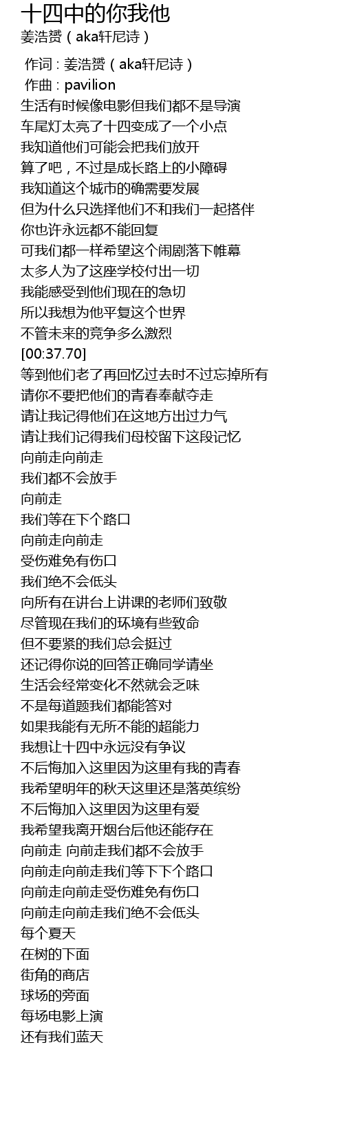 | [02:03.72] | 我想让十四中永远没有争议 |