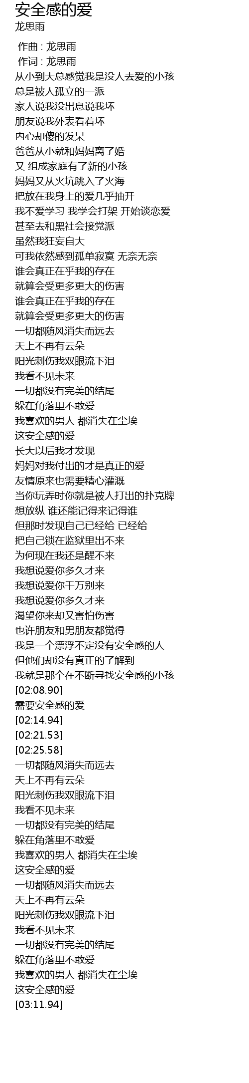 | [02:12.12] | 需要安全感的爱 |