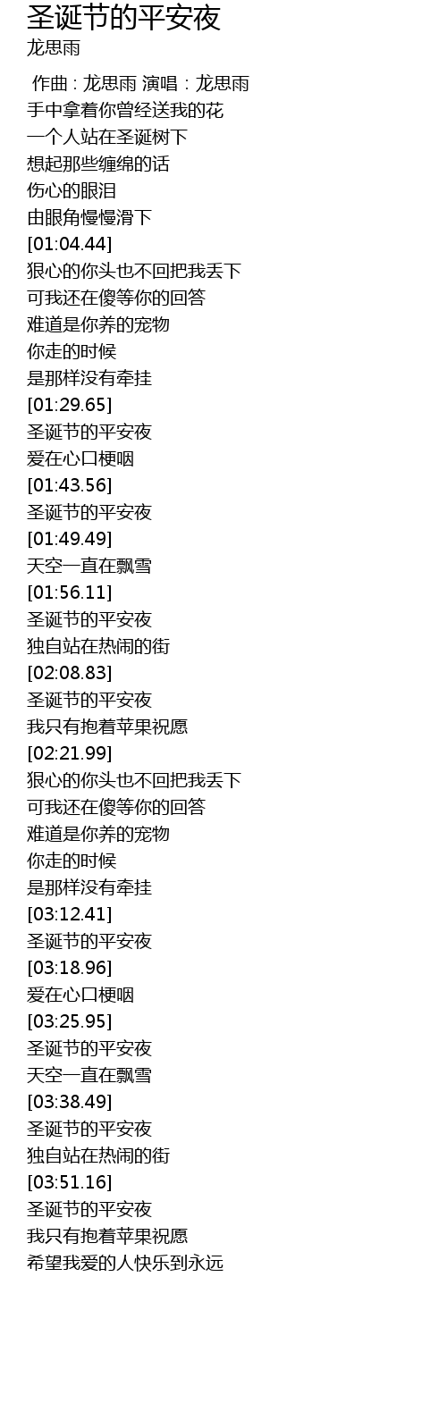 | [01:44.25] | shèng dàn jié de píng ān yè |