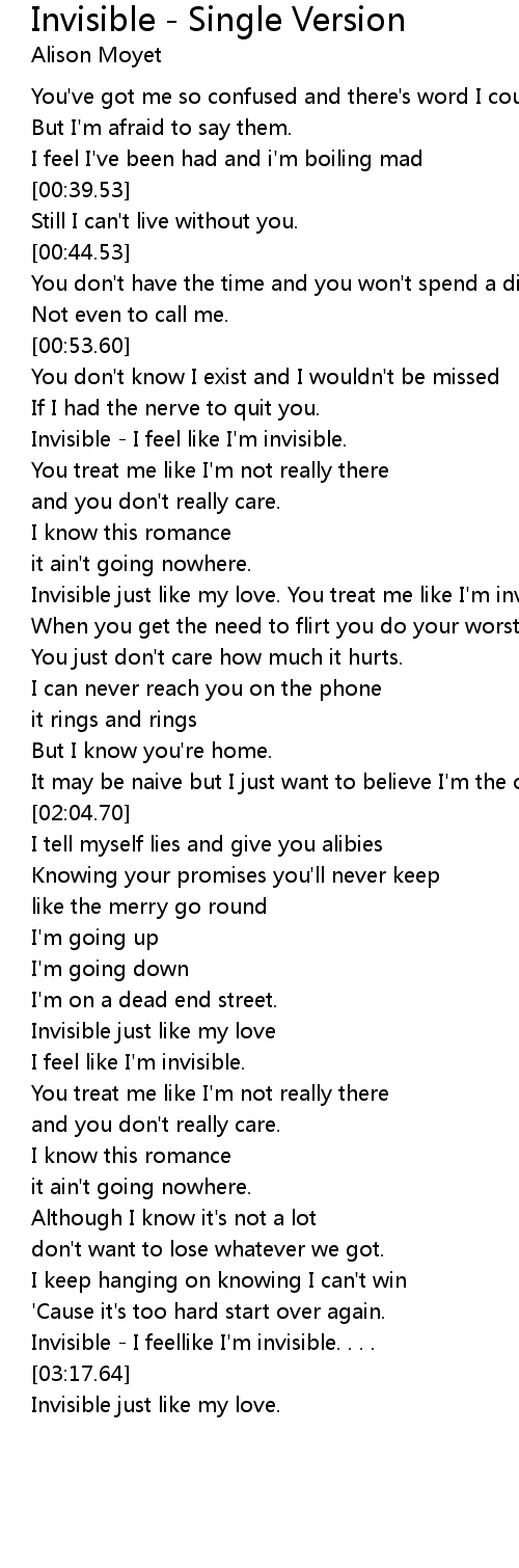 [03:09.26] Invisible - I feellike I'm invisible. . . .