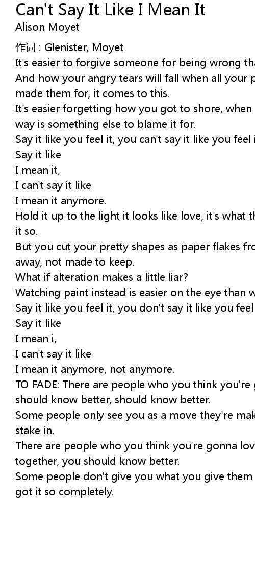 | Say it like you feel it, you don' t say it like you feel it anymore. | |