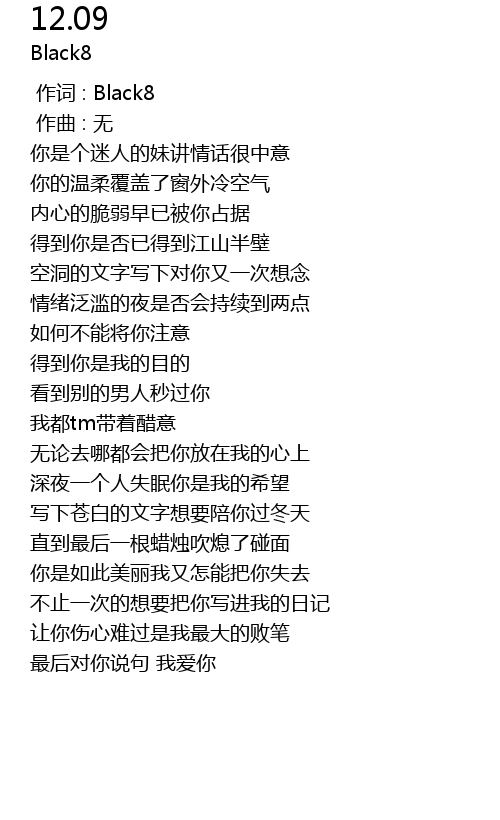 | [00:00.000] | 作词 : Black8 |