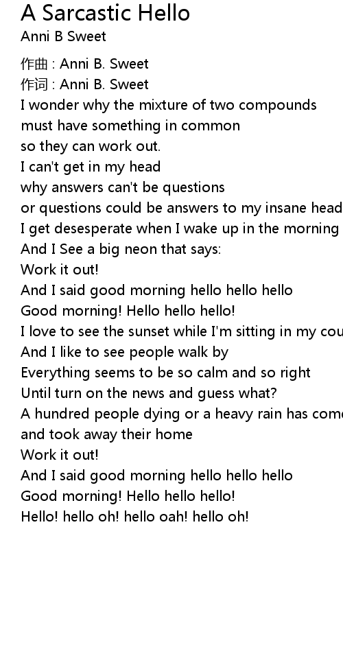 | Song | A Sarcastic Hello |